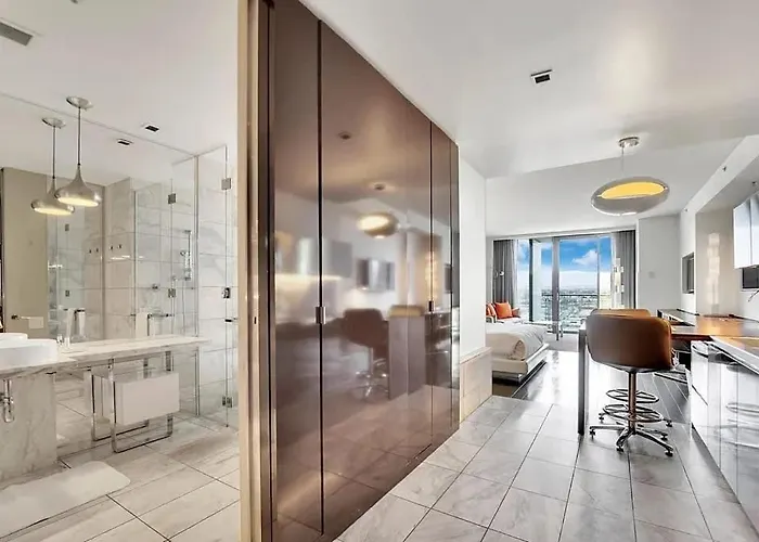 La cucina è dotata di un frigo, un piano cottura e una vetreria, tutto a tua disposizione. Umiya Sushi, che serve una vasta gamma di piatti, si trova a circa 5 minuti in auto. Gli ospiti possono raggiungere facilmente l'aeroporto Internazionale di Las Vegas McCarran, situato a 5 km da questo luogo. La villa Luxurious Sub-Penthouse Studio Balcony Access dispone di un patio per rilassarsi dopo una giornata intensa e di una piscina.